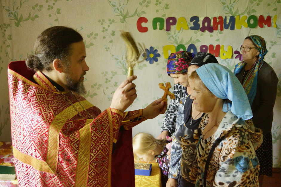 2 августа в деревне Поляны в здании библиотеки был отслужен молебен пророку Божию Илие. По завершении молебна состоялась беседа настоятеля архиерейского подворья иеромонаха Силуана с жителями деревни Поляны.