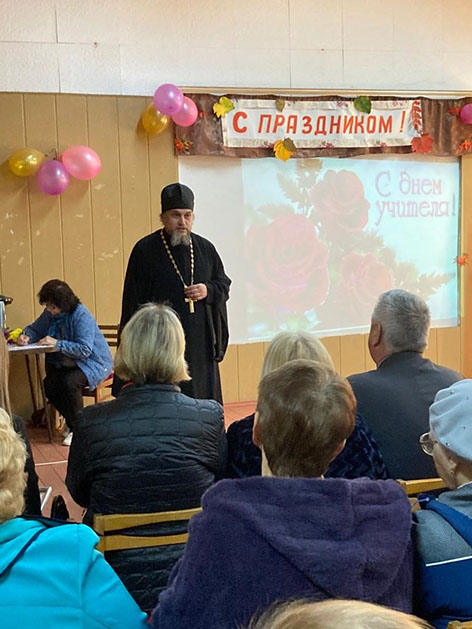 3 октября настоятель Краснохолмского Свято-Николаевского архиерейского подворья иеромонах Силуан (Конев) перед началом концерта, посвященного Дню учителя, поздравил педагогов-ветеранов с приближающимся праздником, поблагодарил их за самоотверженный труд и пожелал им помощи Божией.