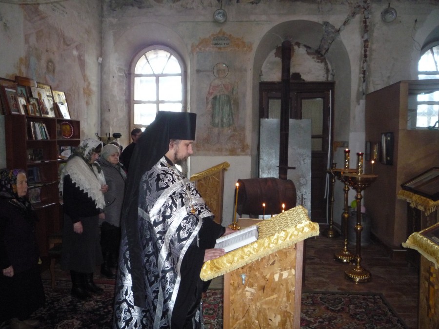 В первый день Великого Поста богослужения прошли в Храме преподобных Зосимы и Савватия Соловецких в деревне Слобода Краснохолмского района: утром полунощница, утреня, часы, изобразительны, вечерня, вечером - канон св. Андрея Критского.
