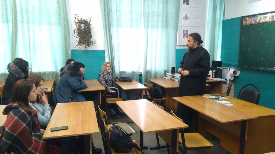 17 декабря в колледже города Красный Холм прошла беседа настоятеля Краснохолмского Свято-Николаевского архиерейского подворья иеромонаха Силуана (Конева) с учащимися.
