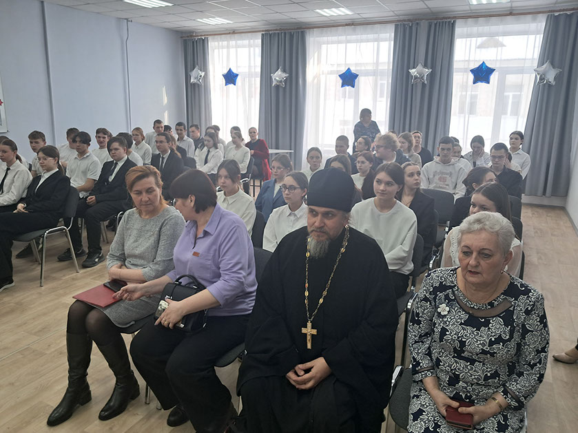 19 февраля в преддверии праздника защитника Отечества в МБОУ «Краснохолмская сош №2 им. С.Забавина» состоялось торжественное открытие года защитника Отечества. На мероприятии присутствовали заместитель Главы администрации Краснохолмского муниципального округа по социальным вопросам Сизова Ольга Николаевна, заведующая отделом образования администрации Краснохолмского муниципального округа Шадеркова Наталья Викторовна, настоятель Краснохолмского Свято-Николаевского архиерейского подворья иеромонах Силуан (Конев), участник Афганской войны Голов Вадим Алексеевич, участники боевых действий СВО Бубнов Роман Александрович, Гусаров Сергей Владимирович, Иванов Игорь Сергеевич.