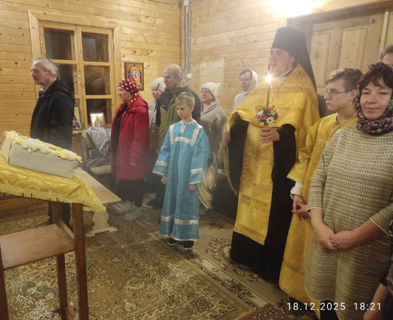19 декабря, в день памяти святителя Николая, архиепископа Мир Ликийских, чудотворца, настоятель Краснохолмского Свято-Николаевского архиерейского подворья совершил Божественную литургию в храме преподобных Зосимы и Савватия Соловецких д. Слобода. На сугубой ектении была вознесена молитва о Святой Руси. По отпусте было пропето славление святителю Николаю Чудотворцу.