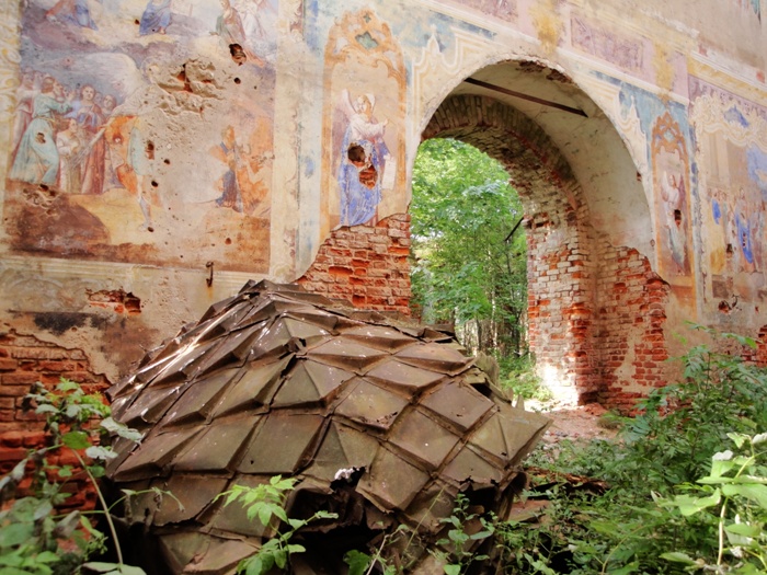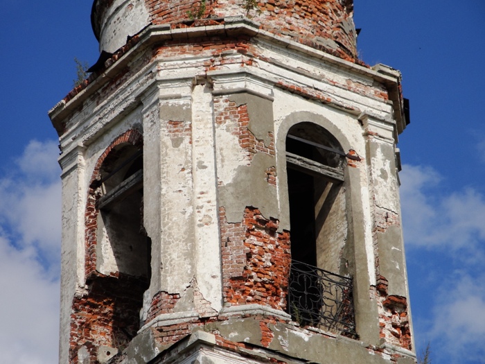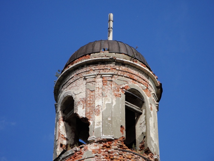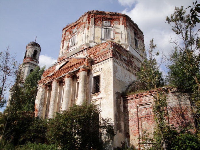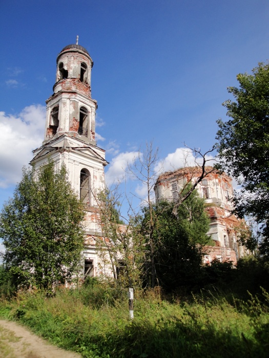 Каменная трехпрестольная церковь со Знаменским и Пятницким приделами. Основной объем храма — восьмерик на четверике, к нему примыкает трапезная и колокольня. Закрыта в советское время.