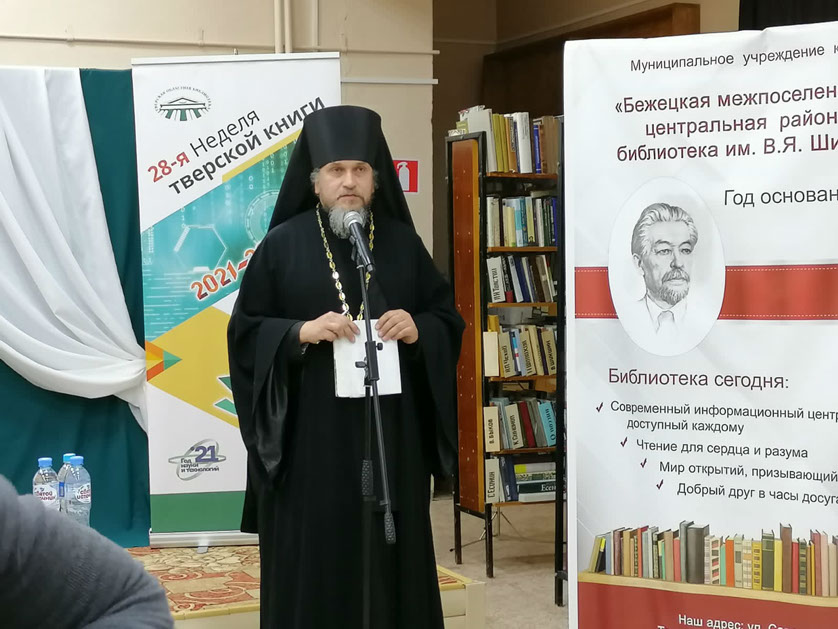 20 сентября, по благословению епископа Бежецкого и Удомельского Филарета, иеромонах Силуан, настоятель Краснохолмского Свято-Николаевского архиерейского подворья, ответственный по делам культуры в Бежецкой епархии, принял участие в мероприятии, проходившем в Бежецкой городской библиотеке им. Шишкова. Мероприятие было посвящено представлению новой книги зав. отделом Словаря художников НИИ теории и истории изобразительных искусств РАХ, кандидатом искусствоведения Анны Леонидовны Павловой «Церковная стенопись северо-востока Тверского края в XIX веке». Иеромонах Силуан (Конев) поблагодарил от лица Бежецкой епархии Анну Леонидовну за замечательный труд, который, во многом, открывает для исследователей тему изучения монументальной церковной живописи XIX века в Тверской области и пожелал автору помощи Божией в дальнейшей работе.