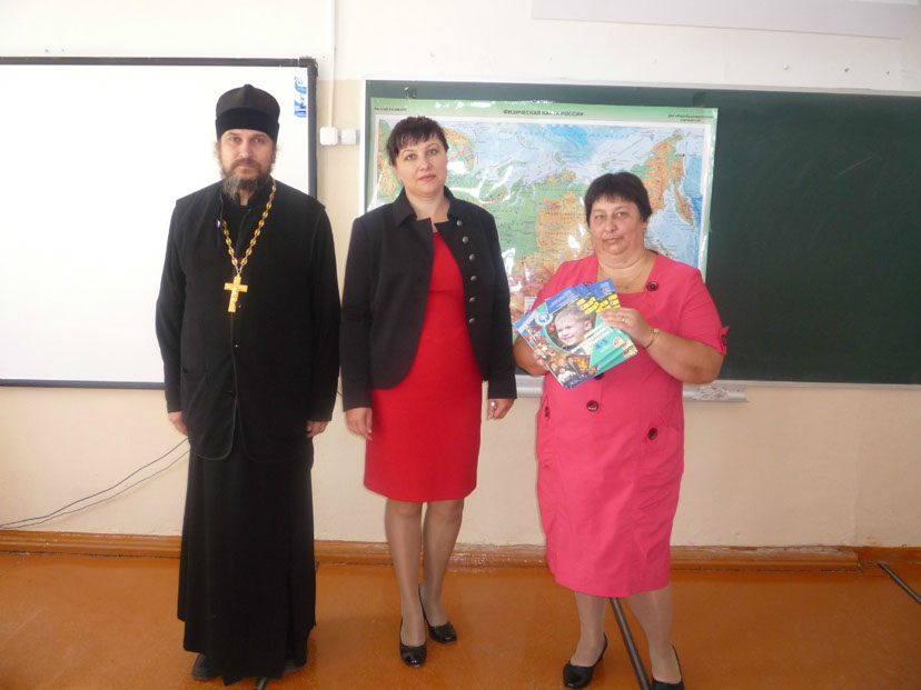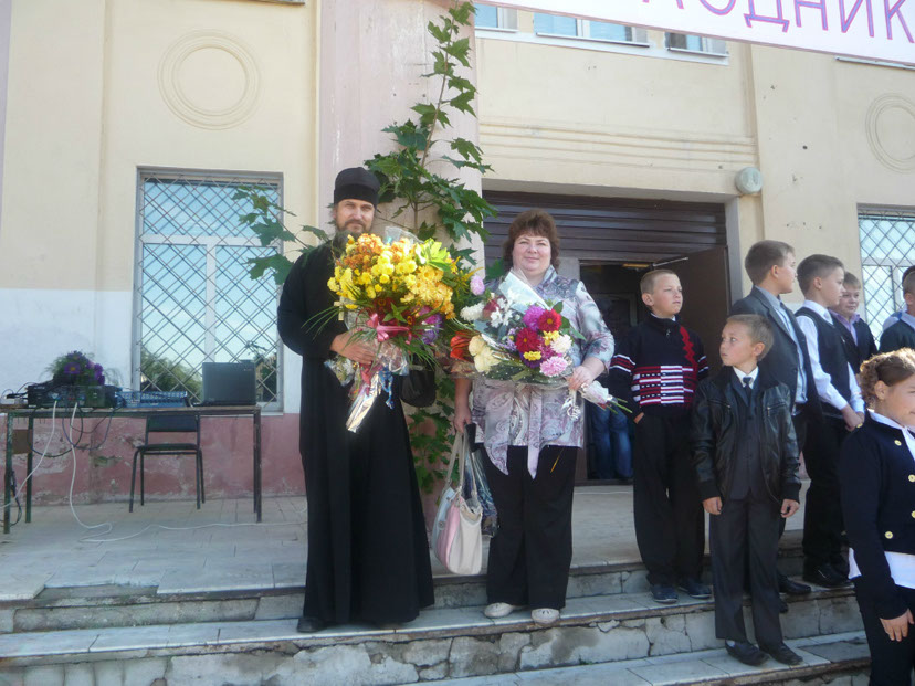 После линейки, школе №1 г. Красный Холм были подарены учебники по Основам православной культуры.