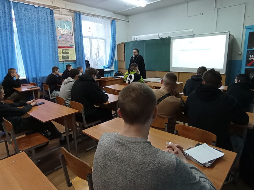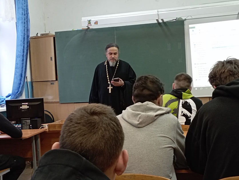 27 марта настоятель Краснохолмского Свято-Николаевского архиерейского подворья иеромонах Силуан (Конев) провел беседу с учащимися Краснохолмского колледжа. Речь шла об истории Русской Православной Церкви в XX веке и о святителе Тихоне Беллавине, патриархе Московском и всея Руси, 100-летия со дня блаженной кончины которого отмечается в 2025 году.