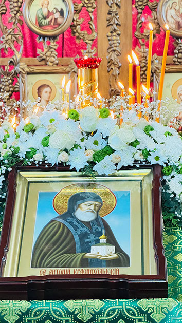 По заамвонной молитве было пропето славление и прочитана молитва преподобному Антонию Краснохолмскому.