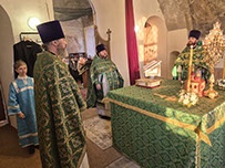 В этот день, по благословению Высокопреосвященнейшего Каллистрата, архиепископа Бежецкого и Удомельского, Божественную литургию в храме преподобных Зосимы и Савватия Соловецких д. Слобода совершил благочинный Краснохолмского округа иерей Михаил Иванов. Ему сослужили: настоятель Троицкого храма г. Красный Холм протоиерей Олег Филиппов, настоятель Казанского храма п. Сандово иерей Андрей Швецов и настоятель Свято-Николаевского архиерейского подворья иеромонах Арсений (Салов).
