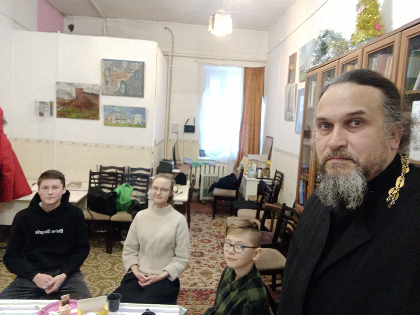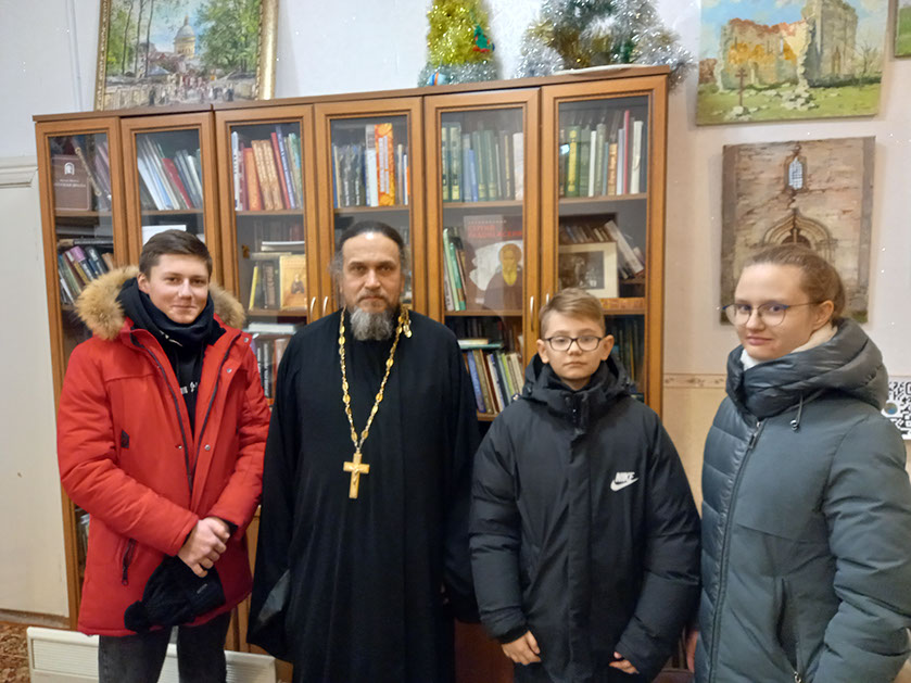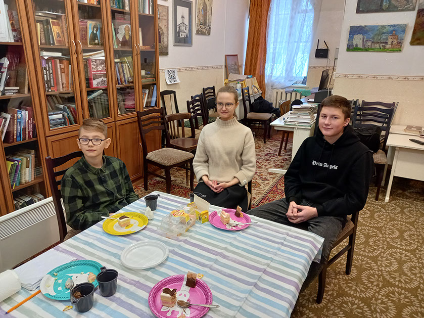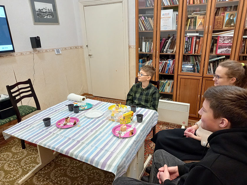 9 января в помещении Духовно-просветительского центра Краснохолмского Свято-Николаевского архиерейского подворья г. Красный Холм прошла беседа с молодыми людьми подросткового возраста - прихожанами храма преподобных Зосимы и Савватия Соловецких д. Слобода Краснохолмского района Тверской области. "Рождественскую" беседу провел настоятель архиерейского подворья иеромонах Силуан (Конев). Были показаны 2 фильма из проекта "Добрые книги читая. Евангельские черты русской литературы" (производство БФ "Национальные приоритеты" при поддержке конкурса малых грантов "Православная инициатива-2021")- по рассказу Солженицына "Пасхальный крестный ход" (читает актер Вадим Андреев) и Чехова "Казак" (читает заслуженная артистка России Алена Бабенко). После показа, за чаепитием, прошла живая беседа, в которой обсуждались духовные мотивы героев русской литературы.