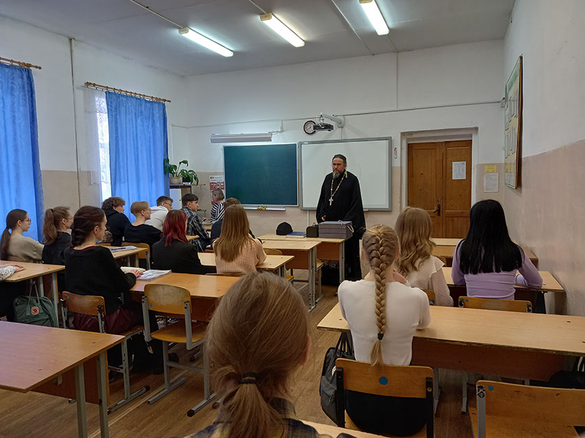 14 марта настоятель Краснохолмского Свято-Николаевского архиерейского подворья иеромонах Силуан (Конев) провел беседу с учащимися 10 класса средней школы № 1. Беседа была посвящена Дню православной книги. Школьникам был показан короткий фильм о Краснохолмском Николаевском Антониевом монастыре. После показа фильма иеромонах Силуан рассказал об истории появления первой русской печатной книги, Апостола, и об истории некоторых святых православной Церкви, в т.ч. святого великомученика Георгия Победоносца.