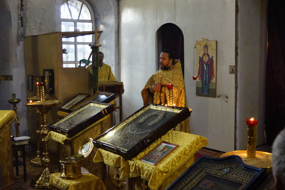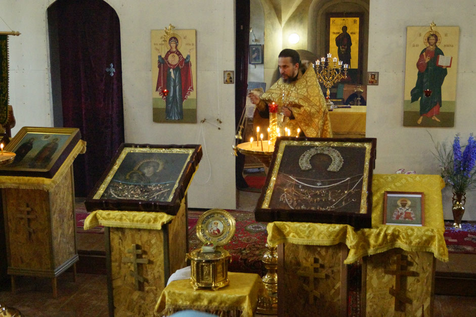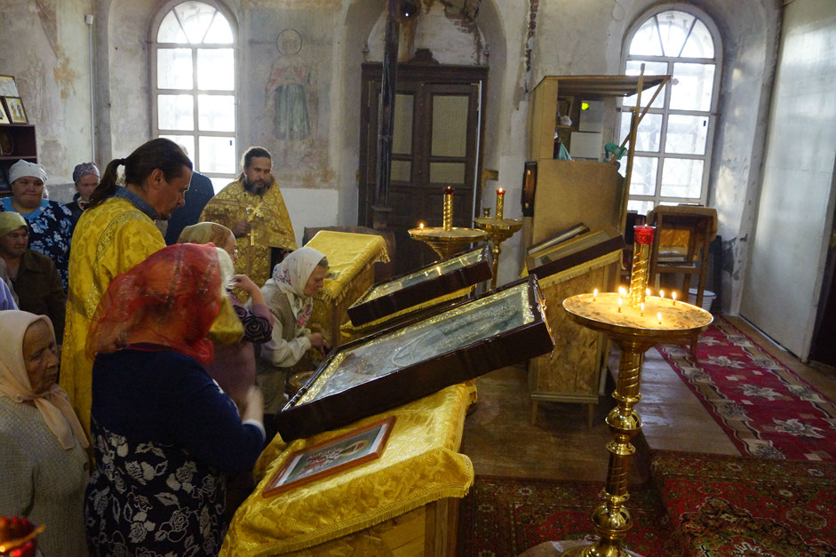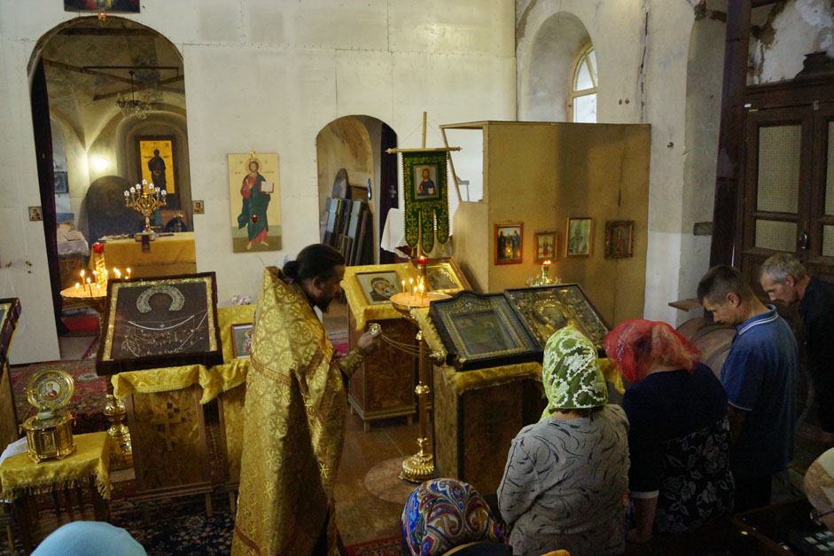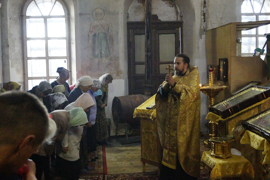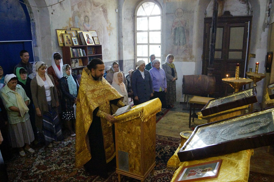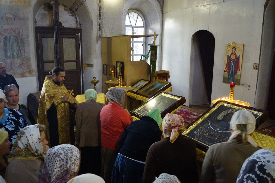 Сятыни были принесены в храм преп. Зосимы и Савватия Соловецких в деревне Слобода, где иеромонахом Силуаном были отслужены вечерня, утреня и молебен. По окончании молебна настоятель обратился к прихожанам со словами о значении святого равноапостольного великого князя Владимира.