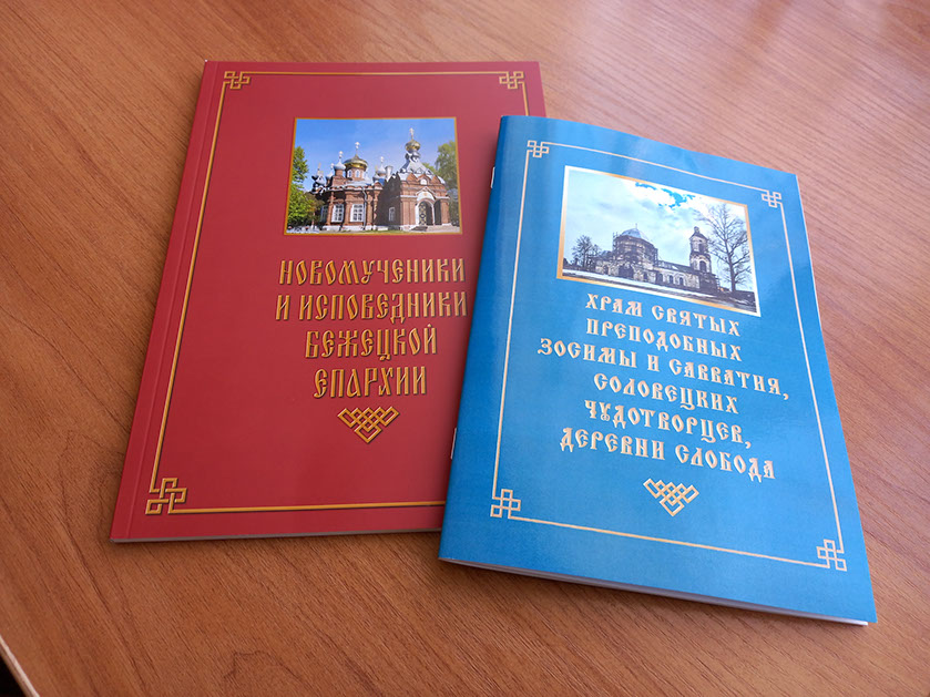 17 марта в Библиотеке г. Красный Холм (Тверская область) настоятель Краснохолмского Свято-Николаевского архиерейского подворья представил 2 книги, подготовленные к изданию Бежецкой епархией - "Новомученики и исповедники Бежецкой епархии" (2- издание, дополненное) и "Храм преподобных Зосимы и Савватия Соловецких чудотворцев деревни Слобода" (о находящейся недалеко от Краснохолмского Николаевского Антониева монастыря церкви).