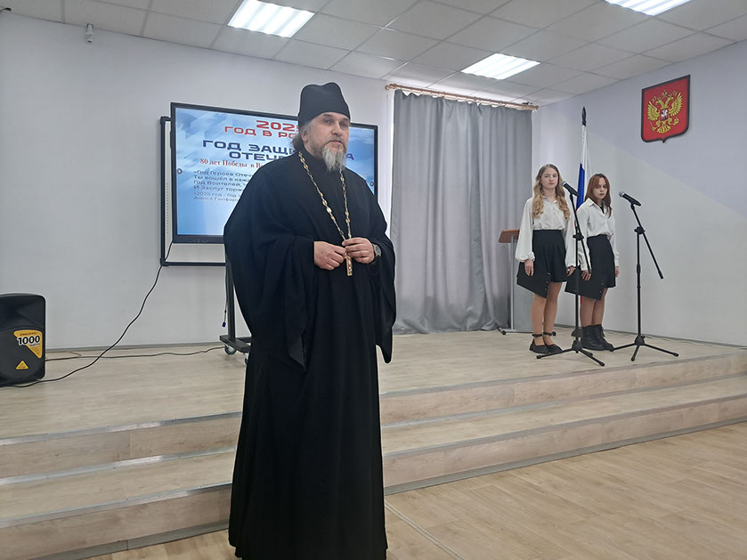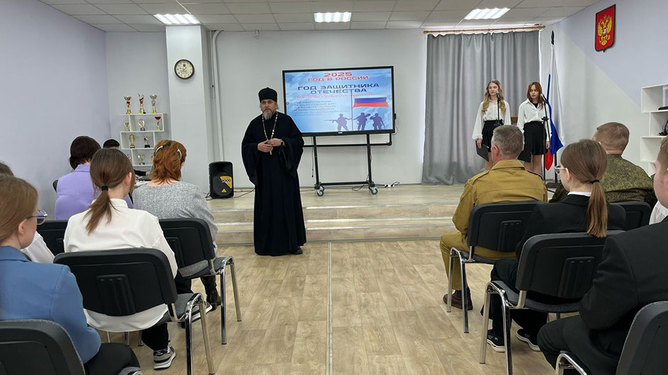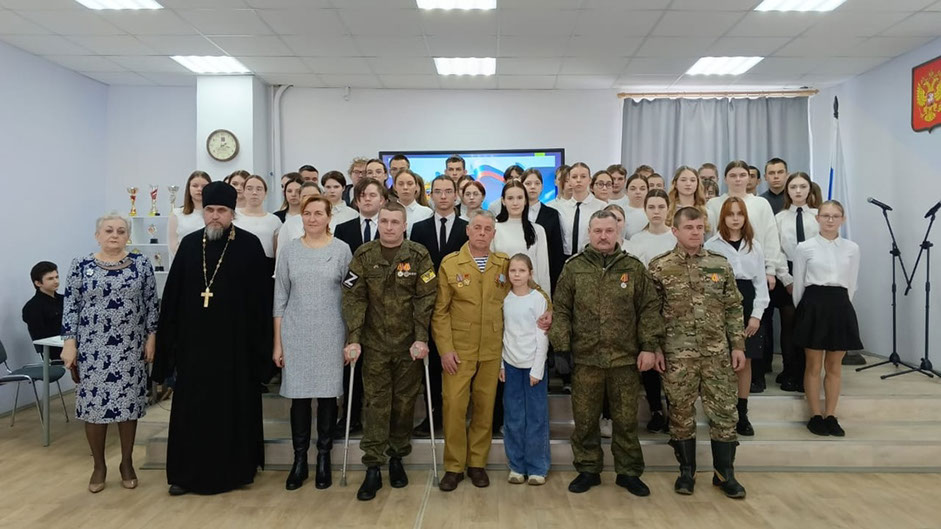 19 февраля в преддверии праздника защитника Отечества в МБОУ «Краснохолмская сош №2 им. С.Забавина» состоялось торжественное открытие года защитника Отечества. На мероприятии присутствовали заместитель Главы администрации Краснохолмского муниципального округа по социальным вопросам Сизова Ольга Николаевна, заведующая отделом образования администрации Краснохолмского муниципального округа Шадеркова Наталья Викторовна, настоятель Краснохолмского Свято-Николаевского архиерейского подворья иеромонах Силуан (Конев), участник Афганской войны Голов Вадим Алексеевич, участники боевых действий СВО Бубнов Роман Александрович, Гусаров Сергей Владимирович, Иванов Игорь Сергеевич.