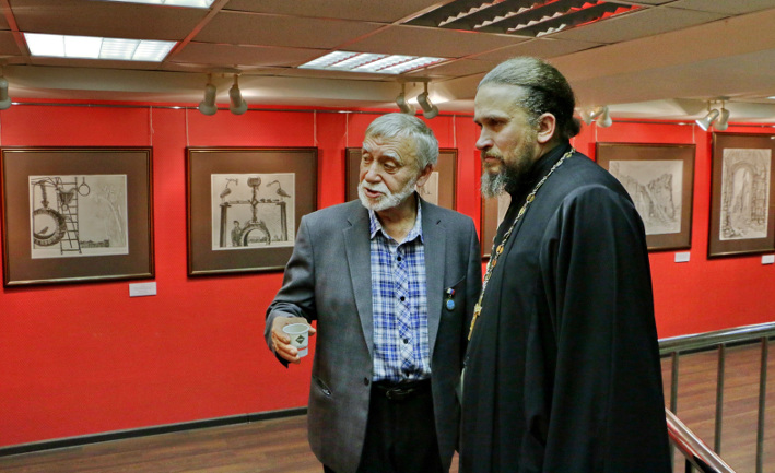 В числе работ, представленных на выставке - графические и живописные полотна, посвященные Краснохолмскому Николаевскому Антониеву монастырю. По благословению управляющего Бежецкой Епархии епископа Филарета в открытии выставки принял участие настоятель Краснохолмского Свято-Николаевского архиерейского подворья, ответственный по делам культуры в Бежецкой Епархии иеромонах Силуан (Конев).