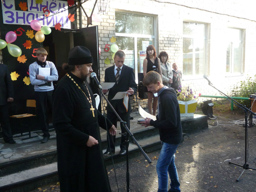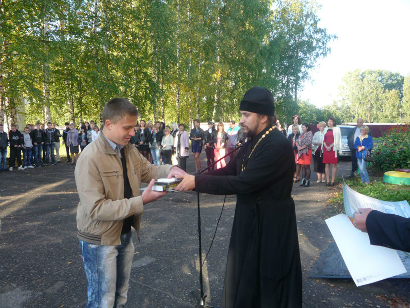После линейки, школе №1 г. Красный Холм были подарены учебники по Основам православной культуры.