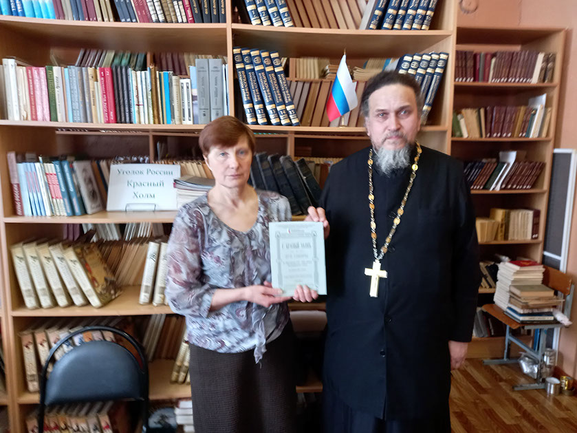В течение предыдущей недели переизданная книга 1913 г. священника Льва Крылова "Город Красный Холм и его соборы" была передана: Главе Краснохолмского муниципального округа Тверской области, в редакцию газеты "Сельская Новь", в Отдел образования Краснохолмского муниципального округа, Краснохолмской библиотеке, в библиотеки Средних школ города Красный Холм... (Тверская область).