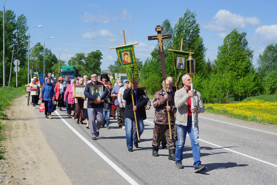 В субботу 3-й седмицы по Пасхе, в престольный праздник - перенесения мощей святителя и чудотворца Николая из Мир Ликийских в Бари - после Литургии в храме Зосимы и Савватия Соловецких в Слободе прихожане прошли Крестным ходом в Антониев монастырь, где был совершен водосвятный молебен. На богослужениях молились и в Крестном Ходе участвовали прихожане храма, жители и гости Краснохолмского района.