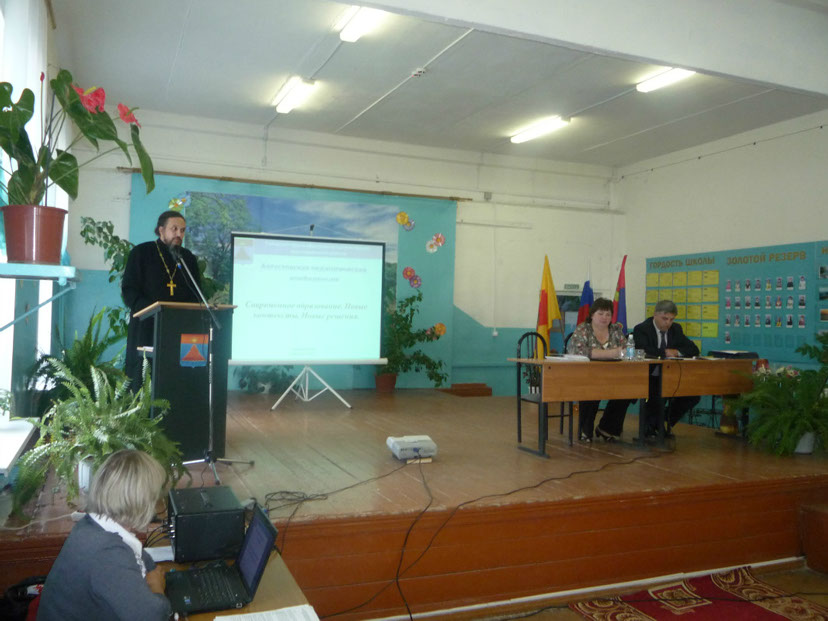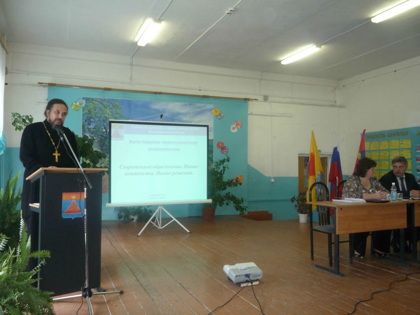 На конференции с 10-ти минутным словом выступил председатель отдела образования Бежецкой епархии, настоятель Краснохолмского Свято-Николаевского архиерейского подворья иеромонах Силуан (Конев).