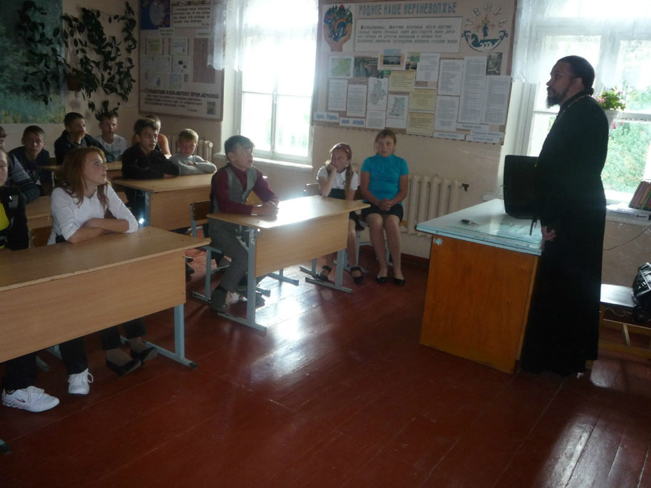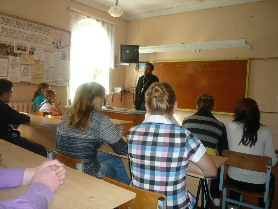 Беседы были проведены с учащимися общеобразовательных школ в деревнях Большое Рагозино и Хабоцкое. Большерагозинской школе были подарены учебники по Основам Православной Культуры.